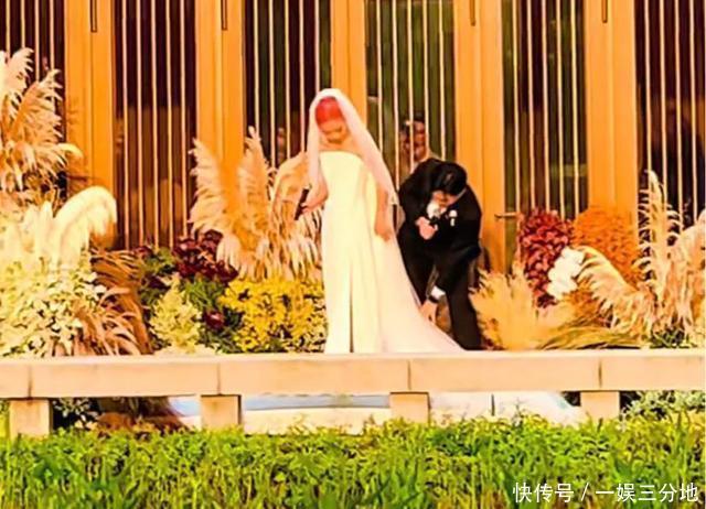 现场也没有明星大咖到场,更没有媒体到场操作,婚礼环境还是亲戚曝光的。 拍照环节,新郎还帮刘一丝整理裙摆、头纱,小两口脸上都带着幸福的笑容,想来感情一定很恩爱。